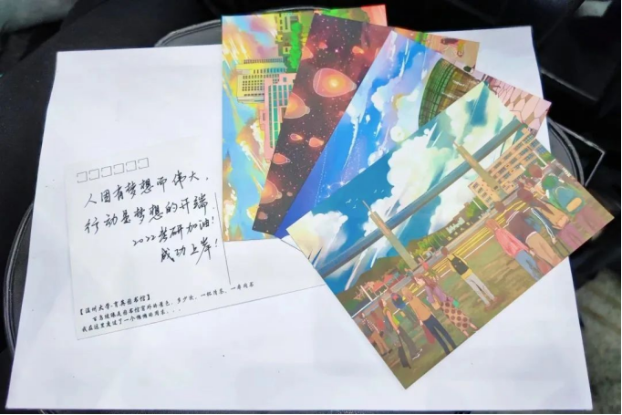 2022年11月26日上午,色色小说 学生党员开展“暖心祝福,艺研为定”活动,每位党员将自己的祝福语写在精美的贺卡上,“星光不负赶路人,你定会在清晨的读书声里和深夜的灯光下,实现自己的梦想。”一笔一划,一字一句,明信片虽小,但每一张祝福语都承载着党员们以及美院师生们对考研同学的深深关切,相信美院备考同学们带着师生们的祝福,一战上岸!