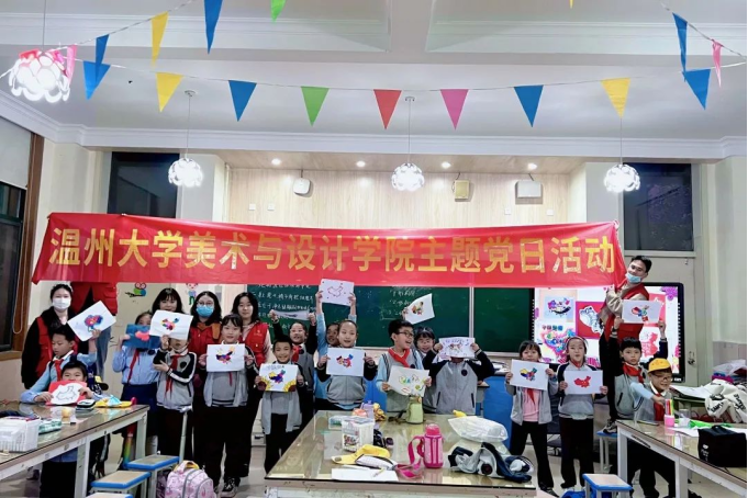 2022年11月25日下午,色色小说 学生党员来到温大附校开展了“以美育人,以红润心”美育拓展活动,课堂以“两岸一家亲,共圆中国梦”为主题,授课党员们通过生动的教学,引导小朋友们一步步理解和感悟:中国是由五十六个民族组成的多民族国家,我们14亿人一起生活在神州大地上,用自己的汗水和智慧去建设这片神奇的土地,因此我们要共同守护这来之不易的和平生活和安宁岁月。