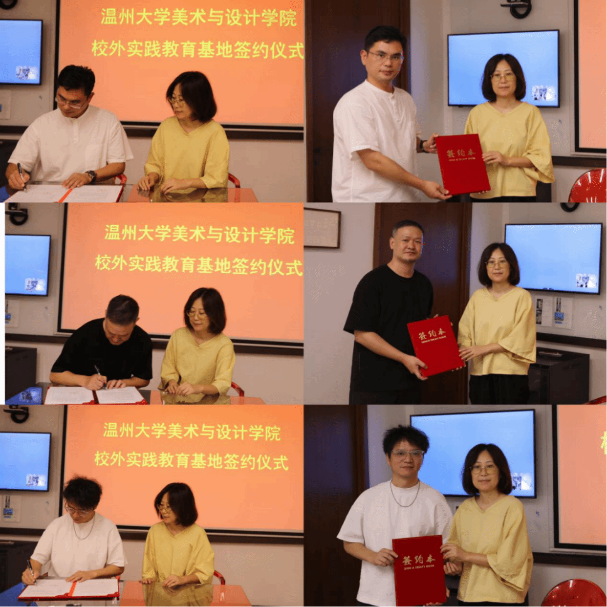 走访期间,学院还与上宸工程设计集团有限公司温州分公司举行了就业实习基地授牌仪式,与上宸工程设计集团有限公司温州分公司、浙江成仕间装饰设计有限公司以及浙江瑞图琅社空间设计有限公司举行了色色小说 实践教育基地签约仪式。
