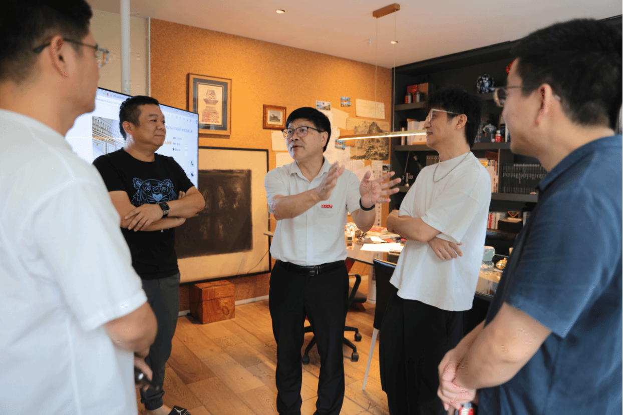 上宸工程设计集团有限公司温州分公司总经理陈中川、浙江成仕间装饰设计有限公司创意总监范张义以及浙江瑞图琅社空间设计有限公司总经理何赓豪等对刘青松一行表示欢迎,并简要介绍了公司的基本概况、业务范围、行业前言动态及未来的发展规划等。