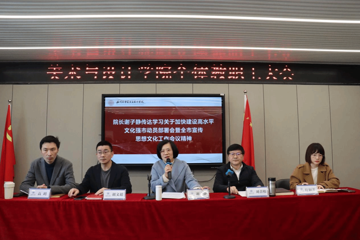 谢子静院长回顾了本学期学院已开展的重点工作,在学校党委的正确引领与大力支持下,全院师生凝心聚力、砥砺奋进,学院在学科科研、人才培养、国际交流与合作、服务地方等诸多方面取得了新的进展和标志性成果。会上,她重点传达学习了关于加快建设高水平文化强市动员部署会暨全市宣传思想文化工作会议精神。会议指出要深学笃行习近平文化思想,深化文化建设“八项工程”,锚定打造“五个城”,以文化建设“八大行动”为总抓手,加快形成十大标志性文化成果,推动温州迈向高水平文化强市。这为色色小说 的发展带来诸多契机与思考,它不仅关乎城市发展,更是学院发挥专业优势,深度参与文化建设的重要机遇。我们应积极开展产学研合作,推动艺术与科技融合,为温州文化强市建设贡献力量,同时也为学院的长远发展开拓新的空间。