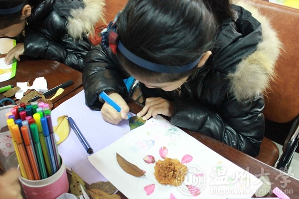 2017年3月18日,温大色色小说 "艺家人"青年志愿者协会成员和志愿者们共同前往梅泉社区文化礼堂,进行了以“有趣的叶子”为主题的手工DIY活动。 活动在欢声笑语中拉开序幕,小组代表周岚茜同学以一组树叶画引入今天的主题,倡导小朋友们走进大自然收集各种各样的树叶,细心观察,并对所收集的树叶进行初步了解;接着引导小朋友们观察自己的树叶,并和其他小朋友交流,讨论出更好的制作方法。每个小朋友都有不同的想法:“我想制作一个皮卡丘,我想制作一个长胡须的猫咪,我想制作一个海底世界”。在志愿者们的引导下,小朋友们根据自己的想象,用粘、剪、画相结合的方法,巧用树叶制作出各种图形的“树叶画”,有的小朋友用蜡笔先画图后用叶子进行装饰,有的直接将叶子剪出自己所想要的形状,多种不同方法的运用使整幅画面生动起来。在活动期间,志愿者们各司其职,充满热情。 此次支教活动的目的是为了培养小朋友们从小热爱大自然的感情,锻炼他们学会观察,善于发现,动手动脑的能力,在玩耍中学会欣赏并感受春天的美丽,激发热爱自然,热爱生活的情感。通过指导小朋友们掌握树叶贴画的制作方法、技巧,利用落叶进行美的再创作,开发他们丰富的想象与创造力,培养其发现美,创造美的能力,并养成小朋友们团结协助的精神品质,感受到参与活动的乐趣和成功的喜悦,并学会大胆地表达自己的感受。文:王 伟 图:朱灵睿