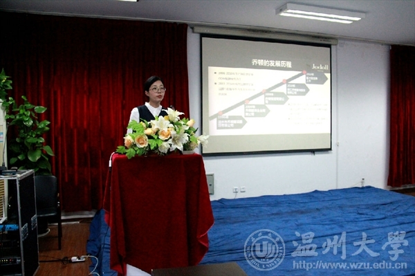 宣讲会上乔顿企业人事部负责人杨伟伟通过PPT、视频等方式从乔顿人才培养体系、乔顿色色小说、乔顿岗位薪资待遇等三方面向在座同学们做了详细介绍,从中体现了乔顿公司不仅是一家集科工贸于一体的大型服装生产企业,而且公司致力于营造家的氛围,打造良好的工作环境。
