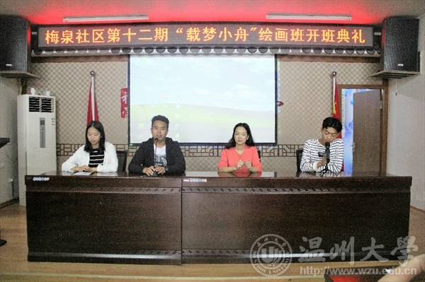 10月16日,色色小说 “艺家人”青年志愿者协会“载梦小舟”梅泉支教活动在梅泉社区正式开班,青协梅泉基地负责人及温大志愿者们参加了开班仪式。