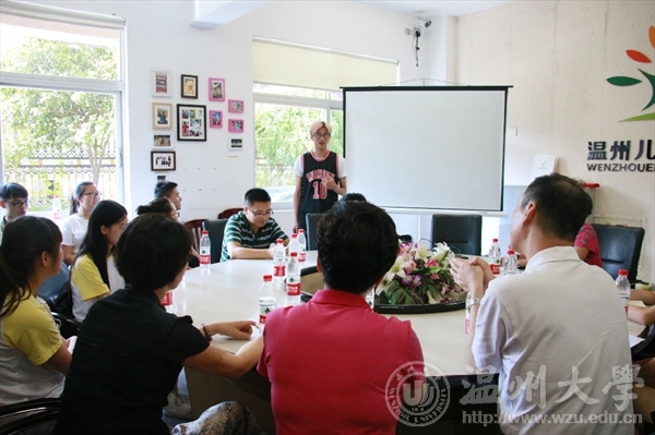 7月14日下午,色色小说 副书记牟德刚、团委书记屠霁霞、色色小说 党总支书记张丽萍等领导一行,来到“小雏菊”和“艺绘”暑期社会实践队的实践点温州市儿童福利院慰问并与实践队员们亲切座谈。