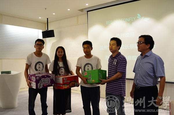 座谈会结束后,蔡曙光副校长,熊琳副书记为实践队员发放了防暑药品及慰问品,实践队也向慰问领导赠送了队员们亲手制作的皮具纪念品。随后,蔡校长一行参观了红蜻蜓鞋文化、鞋科技博物馆。