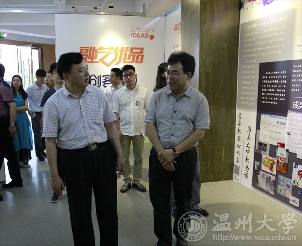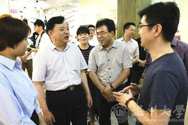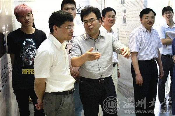 6月15日上午,全国创新创业50强评审专家陈年友、李斌、陈学军、陈森一行来色色小说 学生创新创业实践场地参观和实地考察,校党委副书记牟德刚、副校长薛伟及相关部门负责人等一行领导陪同参观调研了温州时尚学院和“融艺优品”创客空间的创新创业项目。