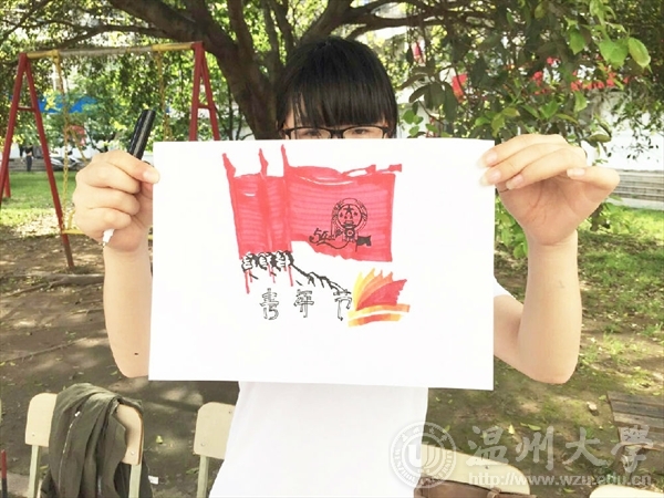 为让在校大学生进一步认识五四运动,学习五四精神,并丰富业余文化生活,增强同学间的凝聚力,2016年5月4日,在第97个五四运动纪念日之际,温大美院“艺家人”青年志愿者协会在A区主干道上开展了以五四运动为主题的手绘活动。下午一点,在A区主干道上,志愿者们并排坐在长凳上,开始在纸上绘画关于五四运动的图案。有的同学用马克笔,奇思妙想,绘制出五四运动的精神;也有的同学用水彩颜料,精心勾勒,描绘出青年大学生的朝气蓬勃。同学们利用不同的绘画工具,绘制出各式各样的作品,并且将优秀作品打印到T恤上。这次的活动开展的很成功。五四运动是一次彻底的反对帝国主义和封建主义的爱国运动,也是中国新民主主义革命的开始。“艺家人”青协借五四运动之际开展这次主题活动,其目的是为了让在校大学生进一步认识五四运动;同时也能丰富在校大学生的业余文化生活,激发他们热爱生活、热爱学习、勇于创新的热情,增强同学们间的凝聚力和战斗力,同时也希望他们能拥有积极向上的朝气。 文:“艺家人”青年志愿者协会图:“艺家人”青年志愿者协会
