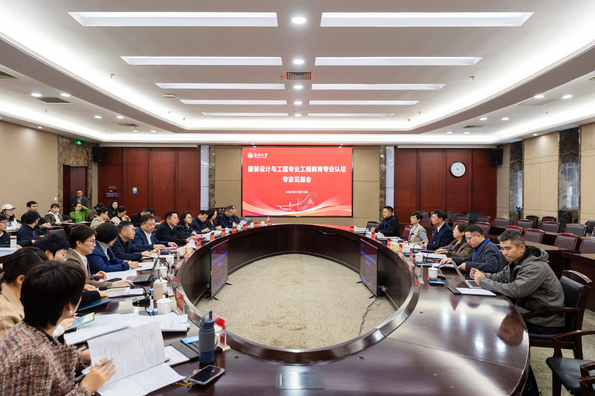 学校相关职能部门负责人,色色小说 领导班子成员,服装设计与工程专业负责人及全体专业教师,相关工科学院教学副院长及专业负责人参加了见面会和反馈会。