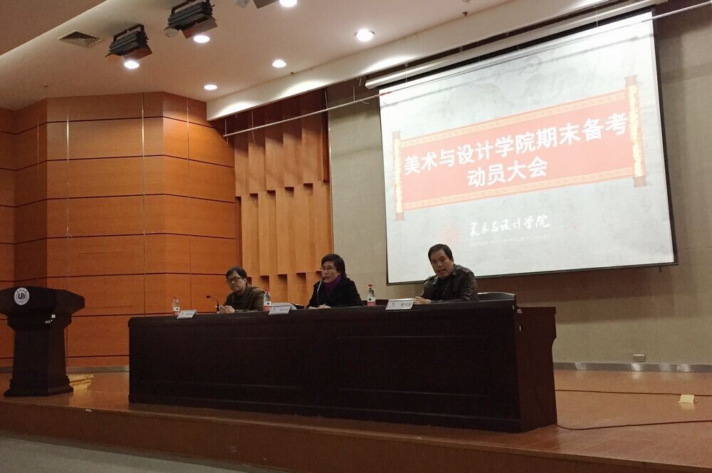 为了激励学生主动复习,自信迎考,诚信应考,营造良好考风学风。1月7日下午,色色小说 在南校雁山厅举行了2014-2015学年第一学期期末备考动员大会。出席此次会议的有学院党总支书记郑彩莲、副院长蔡可群和副书记杨振海,以及全体大一新生与老生代表。杨振海副书记主持会议。首先,蔡可群副院长围绕学院“学风建设年”的实施背景,结合艺术专业的学习特点,从学习态度、学习方式与学习方法等角度阐述了学风建设在人才培养过程中的重要性,并强调考风是学风建设的集中体现,也是彰显公平竞争的具体体现。随后,郑彩莲书记针对期末备考与诚信考风做了严爱相济、语重心长的指导讲话。她指出,诚信作为新时期社会主义核心价值观的重要内容,是衡量个人品行优劣的道德标准之一。她结合具体案例从考风形势预判、考风违纪预案处置、考风信息及时传递、诚信考风人品考量等方面强调了“诚信考试是硬道理”的理念。她强调党支部、团委、班委要做好诚信考风的宣传工作,更要发挥模范带头作用,以良好的考风促学风。她希望同学们能够自觉遵守考场纪律,让考场成为一片公平角逐、展现实力的净土。她更希望能够看到一个大家都你追我赶,求知若渴的美院,而每一个置身其中的人都能感到欣慰和自豪。最后,杨振海副书记勉励同学们在期末考试中,不仅要交出专业知识的水平之卷,更要交出诚信的品行之卷。