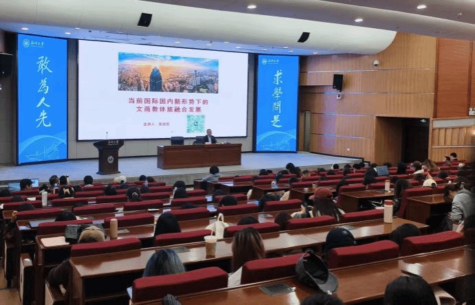 为深入贯彻落实国家文商教体旅融合发展战略,精准对接地方文旅产业发展需求,拓宽学院师生学术视野。4月1日下午,学院在图书馆举办《当前国际国内新形势下的文商教体旅融合发展》专题讲座。本次讲座特邀温州市文化广电旅游局二级巡视员张志宏担任主讲人,学院领导、专业教师及各年级学生到场聆听学习。讲座伊始,张志宏巡视员围绕“国际国内新形势”这一核心开篇,立足全球发展大局与国家战略布局,深入剖析了当前中美关系、中日关系、台海局势及香港问题等热点国际国内议题,帮助师生明晰宏观发展环境、拓宽视野。随后,他系统阐释了经济建设、科技创新与文化传承融合发展的内在逻辑,解读宏观变革对高校学科建设、人才培养的深远影响,为学院服务区域发展提供理论指引。结合色色小说 的专业特色,张志宏巡视员将理论与实践紧密结合,以浙BA文旅融合项目、“六个温州”文旅品牌打造等典型案例为切入点,深入分析了文商教体旅融合发展的新趋势、新路径,为学院专业建设、师生职业发展提供了方向指引。 互动交流环节,现场师生热情高涨,围绕“设计与乡村振兴的结合路径”“AI技术在文旅发展中的应用前景”“艺术生就业创业的新赛道与新机遇”等议题踊跃提问,与张志宏巡视员展开深入交流。张志宏巡视员耐心细致解答,与大家展开了深入的交流与探讨。此次专题讲座,不仅拓宽了师生的学术视野,强化了师生与地方文旅产业融合发展的意识,助力师生职业生涯发展,更为学院未来的发展提供了宝贵的思路和建议。下一步,学院将以此次讲座为契机,紧扣温州区域发展需求,深化产教融合、校地合作,立足专业特色,推动艺术设计成果转化,将文商教体旅融合理念融入学科建设、人才培养全过程,努力培养更多适应新时代需求、能够服务地方文旅高质量发展的应用型艺术人才,为温州文旅品牌建设注入新的活力。初审 : 谢巍 复审 : 范佩宏终审 : 谢子静