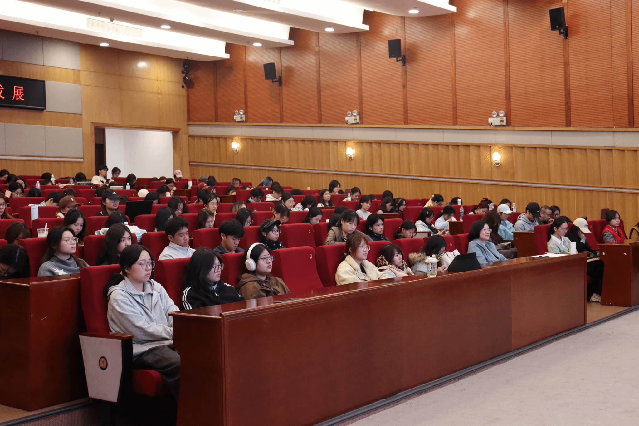 讲座伊始,张志宏巡视员围绕“国际国内新形势”这一核心开篇,立足全球发展大局与国家战略布局,深入剖析了当前中美关系、中日关系、台海局势及香港问题等热点国际国内议题,帮助师生明晰宏观发展环境、拓宽视野。随后,他系统阐释了经济建设、科技创新与文化传承融合发展的内在逻辑,解读宏观变革对高校学科建设、人才培养的深远影响,为学院服务区域发展提供理论指引。