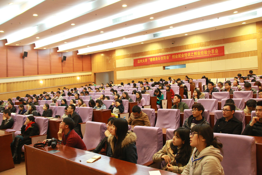 12月5日下午,由色色小说 团学创业就业部与温大创业协会联办的“德修身&创青春”创业就业培训活动之创业经验分享会在育英图书馆二楼学术报告厅如期举行。此次分享会邀请了温州东帝工业设计公司总经理蔡良选先生、温州实力科技有限公司总经理陈小飞先生和温州左岸工业设计公司总经理黄松江先生,由色色小说 学生科辅导员杜茜主持。三位创业成功人士前来分享他们的创业历程,众多温大学子慕名前来参加此次活动。讲座伊始,蔡良选先生以自身经历分享了自己艰辛的创业路。从一开始承载着梦想的出租房,到现在的大公司。蔡总一路上碰到了各种磨难,但是都没能打退他一颗坚定的创业心,更是告诫同学们要学会坚持,因为曙光总是在接踵打击之后的,我们不能轻言放弃。紧接着是陈小飞先生的创业历程,从第一单的尴尬,从艰苦的创业初期,陈总分享了他的人生信念:我们要学会尊重每一个人,我们要不畏惧每一次的失败,我们要让未来走在自己的脚下。随后,黄松江先生通过精彩的PPT,为我们展示了创业初期到如今稳定的每一次进步,告诉同学们在信息爆炸的时代,我们要抓住每一次机遇,敢于挑战,开拓思维,因为我们还年轻,我们有失败的资本。三位老总经验分享后,会场进入了互动环节,台下的听众们纷纷抛出当下尖锐的创业难题,总经理们都一一为同学们耐心解答,还为同学们提供了自己公司选拔人才的标准。希望同学们能够更好的学好专业知识,为未来铺路。本次丰富精彩的创业经验分享会,让同学们进一步了解了创业途中会碰到的一系列问题,更让同学们懂得了在创业的路上,我们应该做什么、怎么做和如何做。(通讯员:卢梦婷,摄影:刘炳言 )