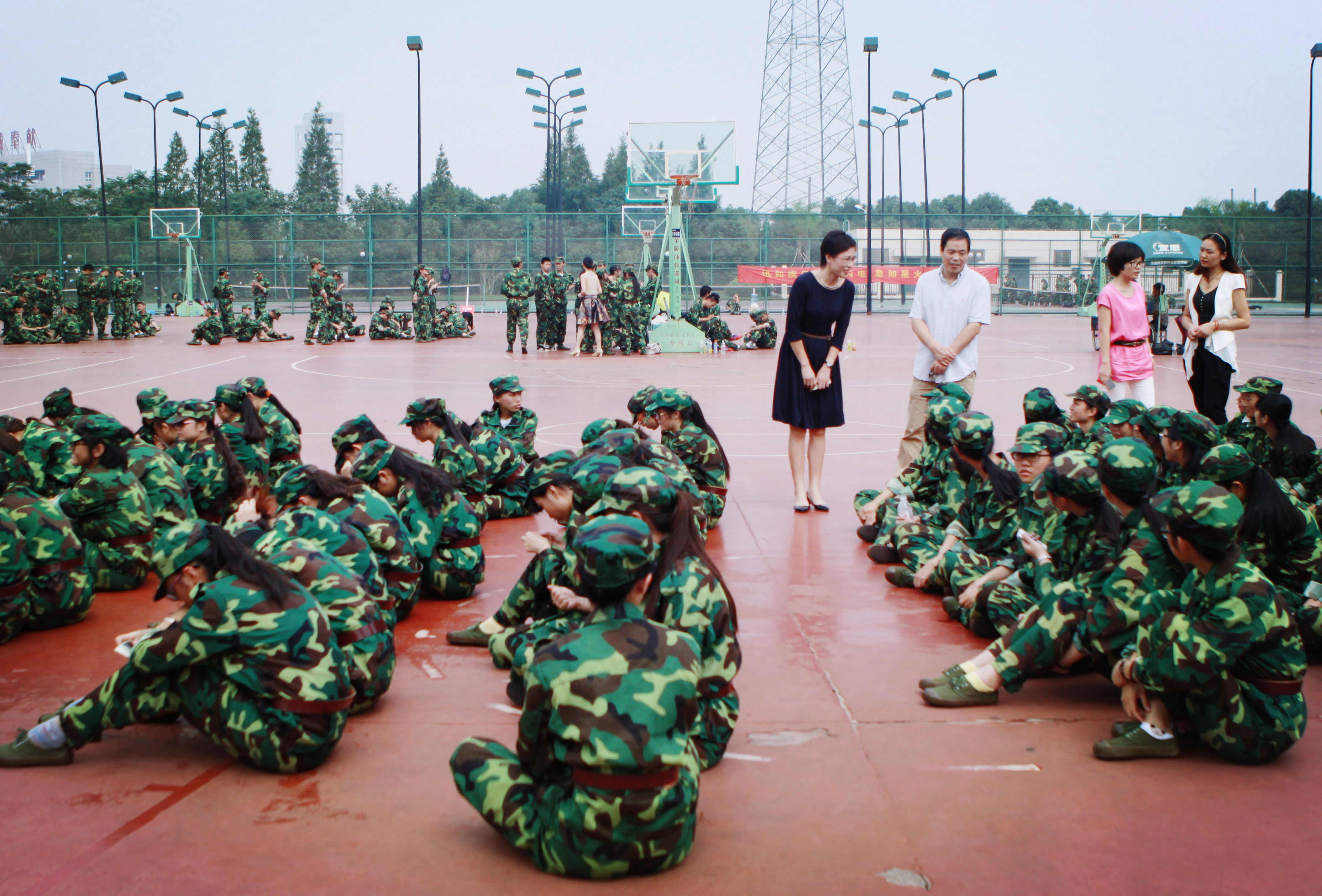 9月26日上午,色色小说 党总支书记郑彩莲、副院长蔡可群,在院办主任李丽、学生科副科长叶如芳的陪同下,慰问了正在军训中的2014级美院新生。 北校操场上,一个个整齐的方阵在有序移动着,清一色的戎装展现朝气蓬勃的青春风采。院领导的到来让他们十分激动,齐声喊到:“老师好!”郑彩莲书记对他们飒爽的军姿、认真的态度、坚强的意志表示称赞。她对新生们讲到:军训是体质的磨砺,也是行为修养的锤炼,更是精神思想的洗礼。她希望新生们能够珍惜机会,刻苦磨练,保质保量完成军训任务,更希望从军训开始,把人生旅途走正、走好、走稳。此外,蔡可群院长向新生们致以亲切的问候,嘱咐他们要注意防暑防晒,以健康的体格将军训进行到底。 学生们表示一定会听取院领导的指示,艰苦训练,不负希望。在简短的座谈之后,新生们又进入了紧张而有序的训练中。