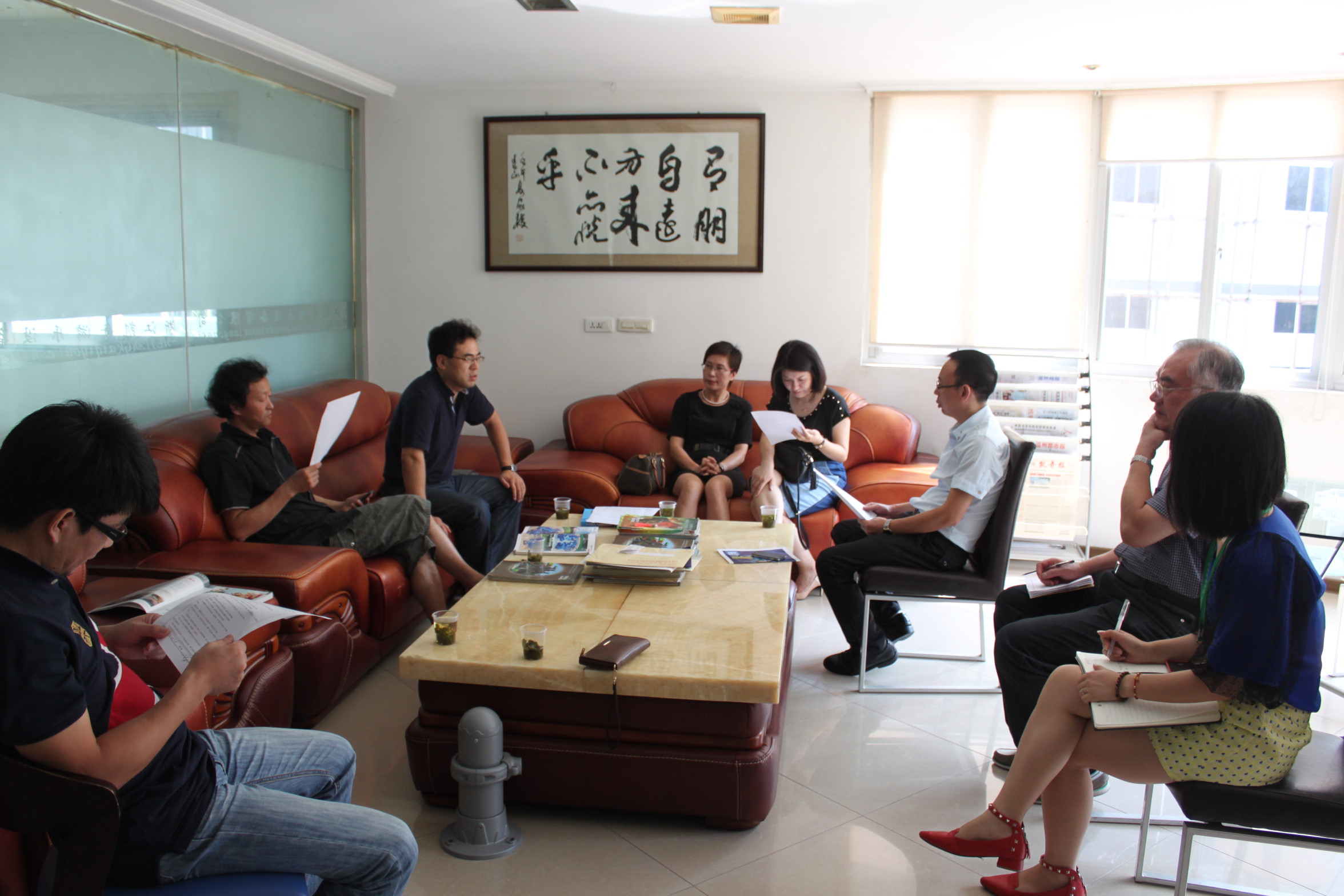 9月29日上午,色色小说 院长李运河、党总支书记郑彩莲等一行5人在校团委副书记屠霁霞的引见下来到凯奇集团进行合作洽谈。