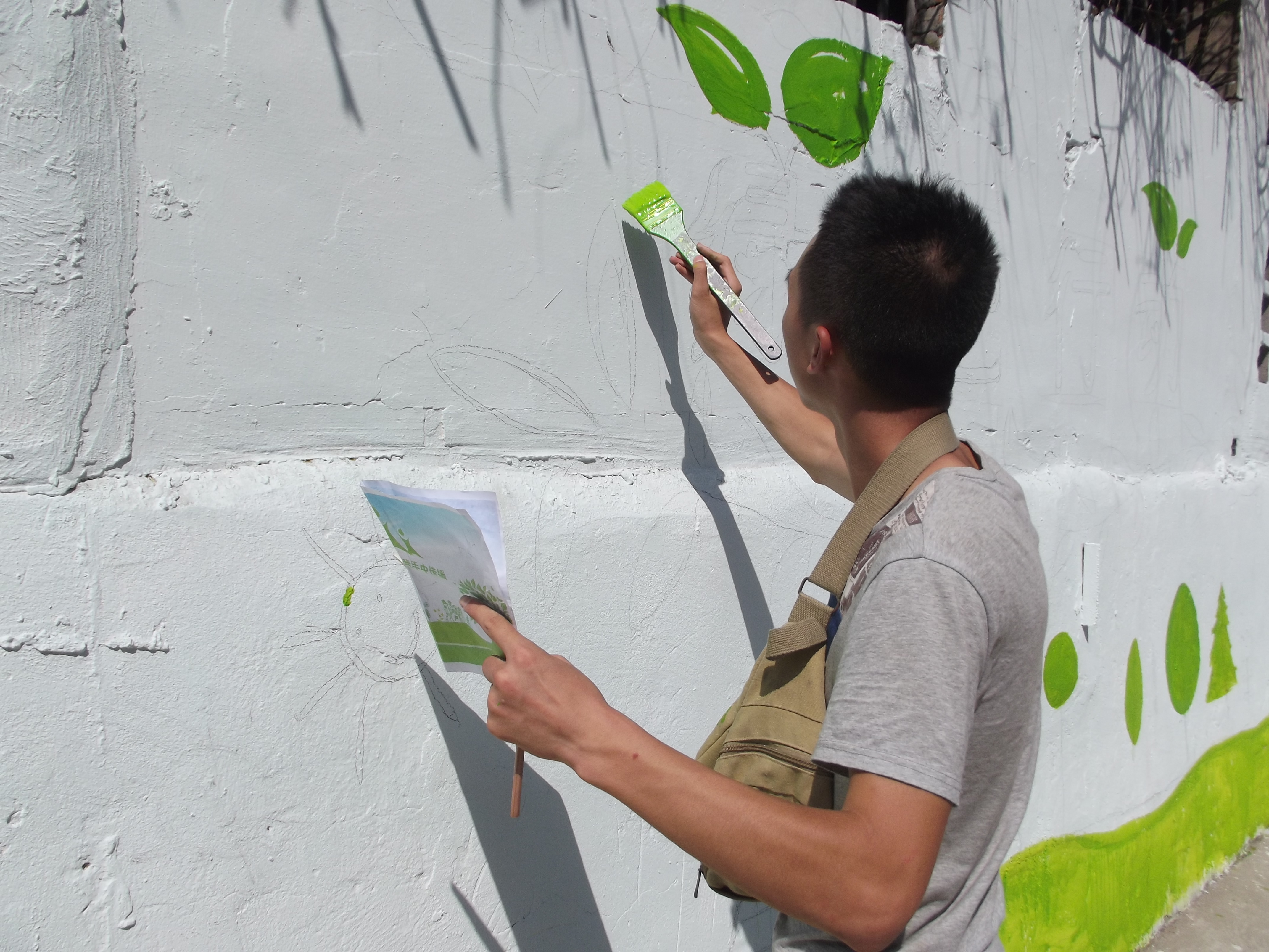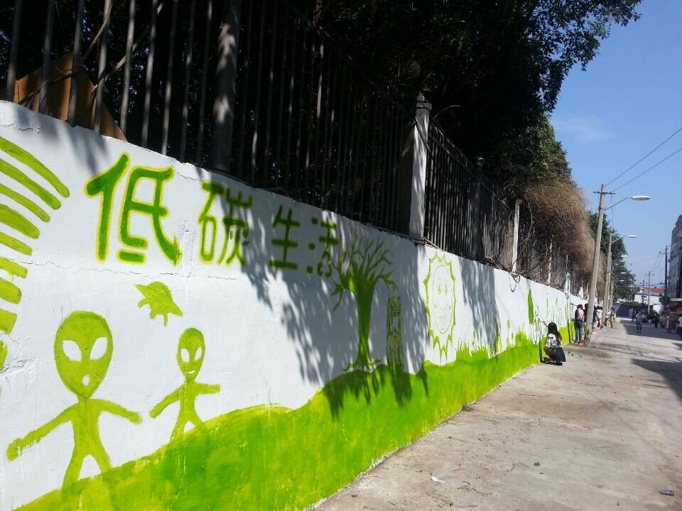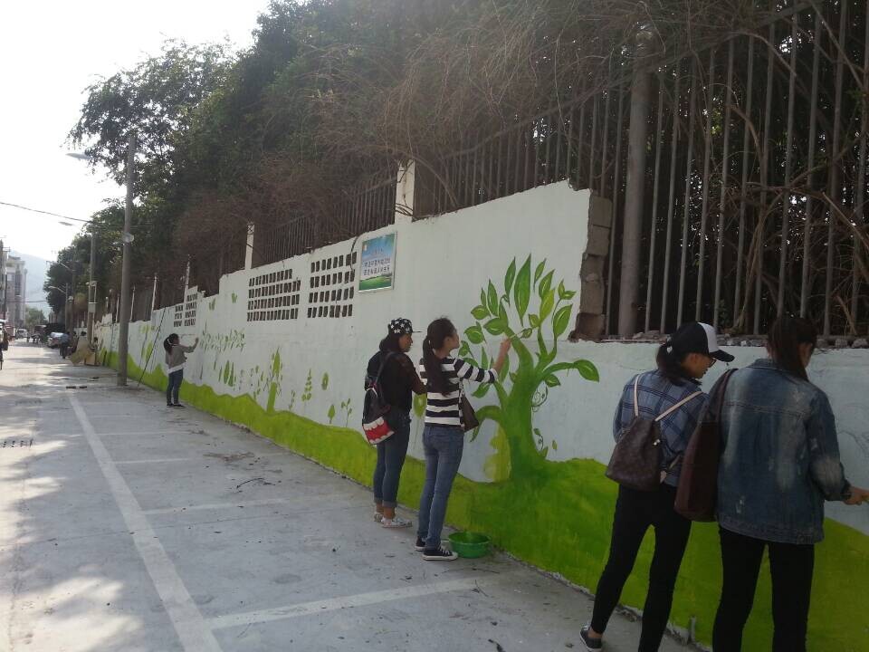 10月12日上午8点,色色小说 “艺家人”青年志愿者协会与瓯海区茶山镇梅泉社区居委会合作举办了“创建文明城市”的墙绘活动。激情满怀的大学生志愿者们结合自身专业优势,以“创建文明城市”为主题,以绿色作为主色调,宣传低碳环保的生活理念。在志愿者的认真绘制下,白色空旷的墙壁被一幅幅美丽的图画所代替,引来附近居民一片赞叹。