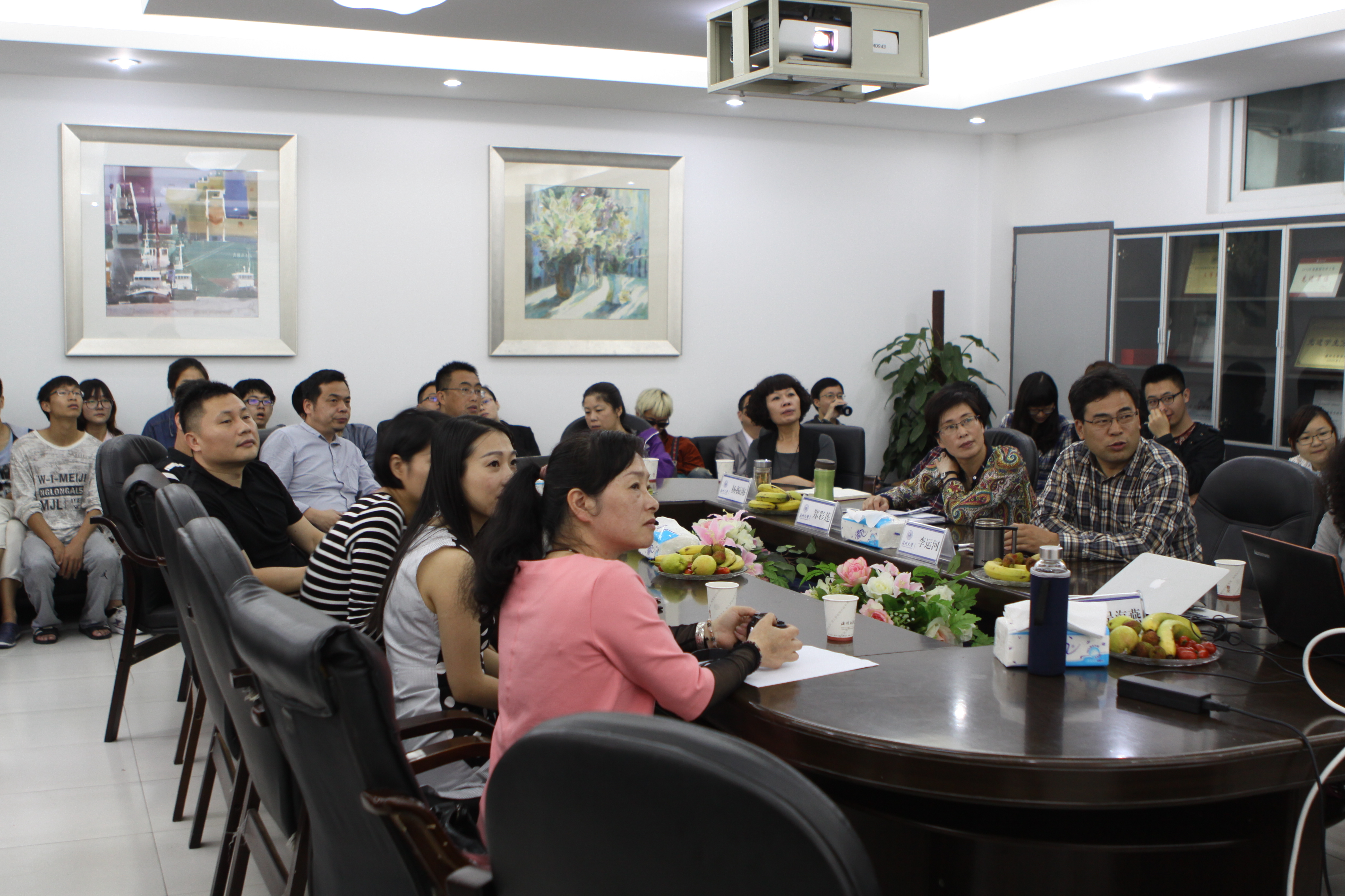 讲座中,吴海燕教授通过设计历史的三个阶段:农耕时代、工业时代、网络时代。结合设计与自然的关系,讲述设计的综合进化、设计教育和设计原则,从而引出设计入道的主题。吴教授以温州的经济文化红花染等为例指出设计应该明白自然规律,注重设计与自然的关系。她指出,本着“人与自然是设计本源、人与物是设计本质、人与人是设计本位、人与社会是设计本义”的设计原则,通过反思早期的艺术教育并结合社会发展开展特色设计教育,进行艺术设计的综合进化。最后,吴海燕教授综合提出了设计入道的观点,设计要入景、入境、入情、入术和入理,是相互关联层层递进,生生不息的艺术创作过程。随后,就设计教育的问题,吴教授与在场师生进行了愉快的交流和分享。