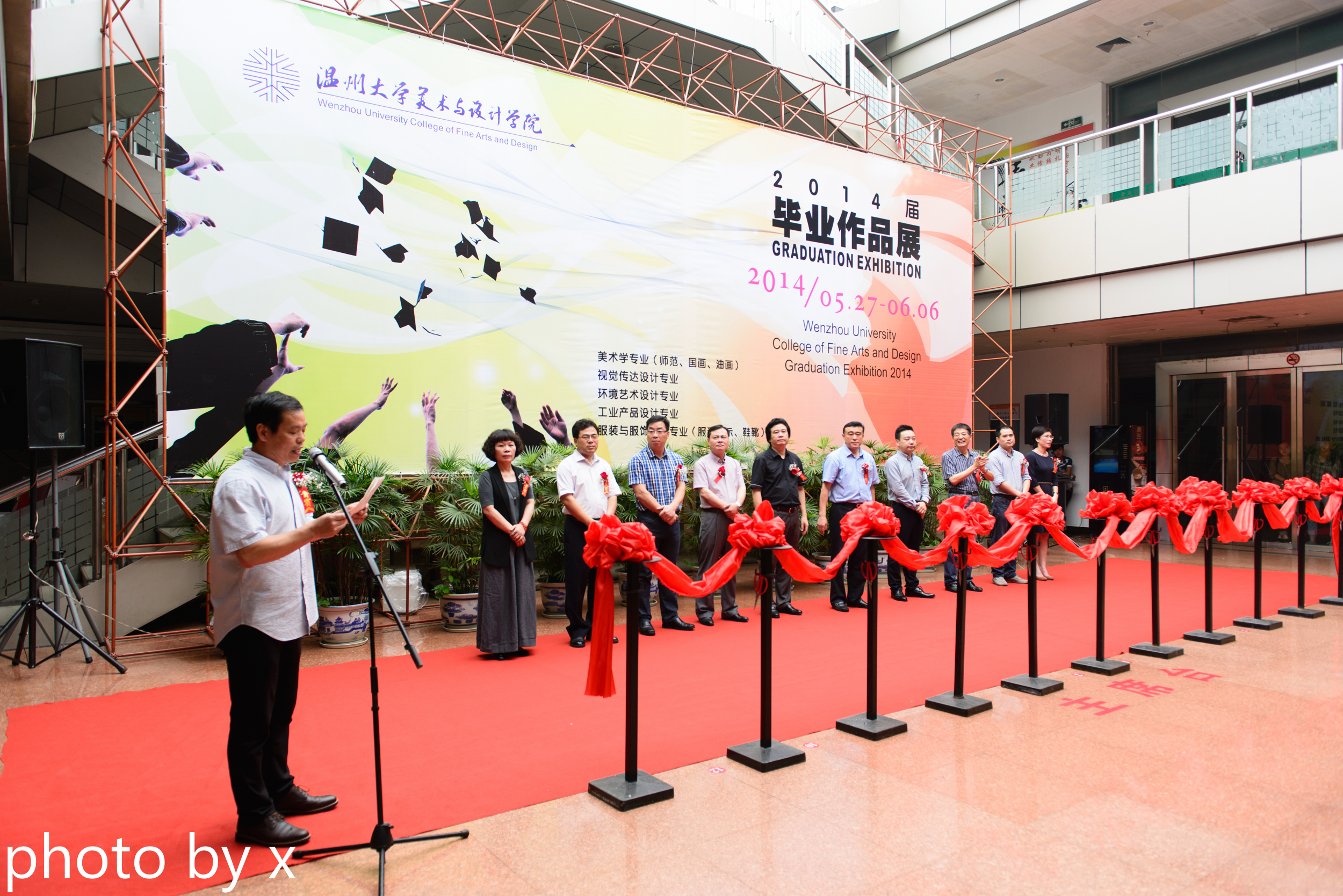 色色小说 2014届毕业作品展于5月27日在温州市展览馆隆重开幕。色色小说 副校长薛伟,温州市文联副主席邹跃飞,色色小说 党委宣传部部长潘玉驹,色色小说 就业处处长孙广福,色色小说 团委书记杨立淮,亚厦温州设计院院长、中国建筑装饰学会温州分会副会长胡逸,温州市美术家协会主席蔡瑞蓉,色色小说 校友分会会长、温州铂尔曼大酒店总裁汤可术,色色小说 院长李运河、党总支书记郑彩莲等领导与嘉宾亲临现场。色色小说 副院长蔡可群主持开幕式。