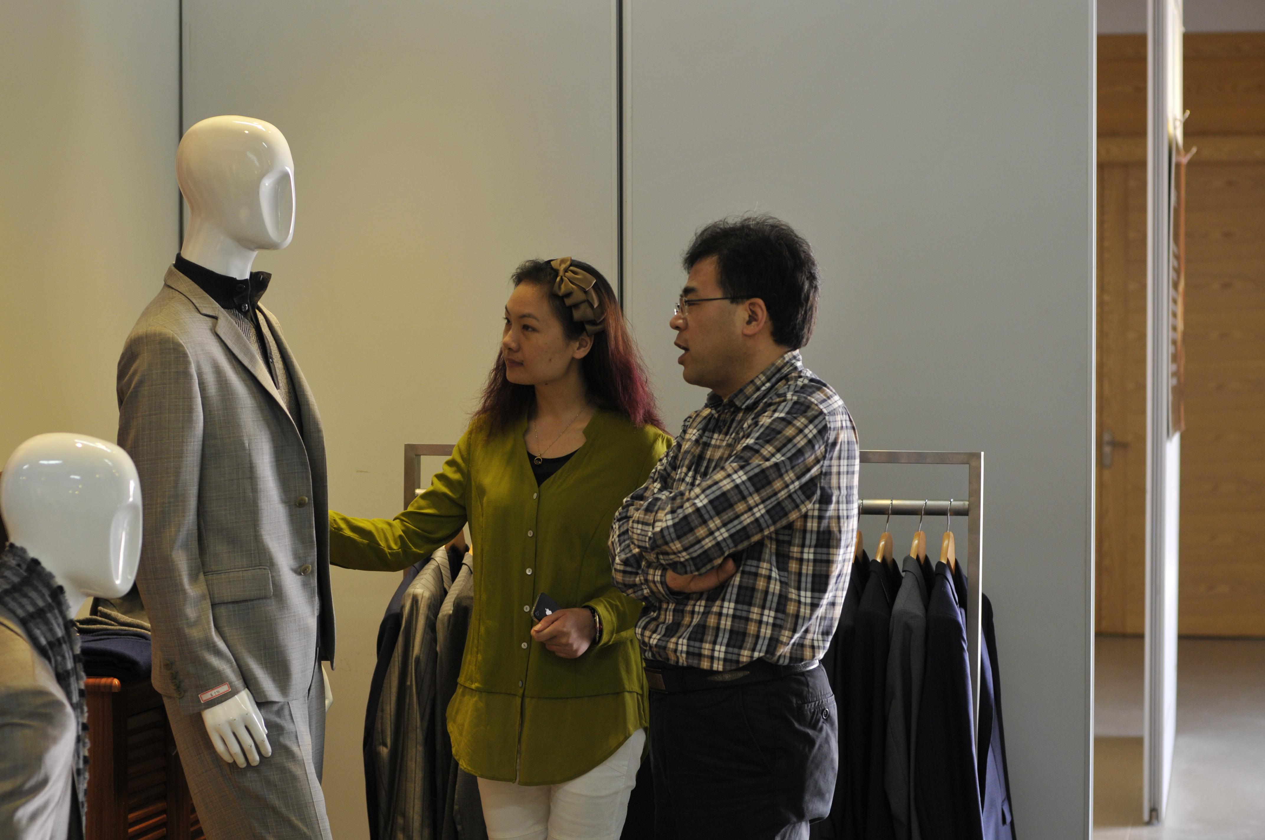 本次展出的学生作品是由教育部“卓越工程师教育培养计划”2011级服装设计与工程专业的同学们完成的,这是男装款式设计、男装结构设计、男装工艺、服装工业样板等课程学习成果的集中汇报展示。同学们充分运用服装课程所学的设计方法、结构原理、制作技能,将知识融汇贯通,设计并制作完成了作品。展出现场,同学们一边仔细观看,一边相互交流心得体会,同学们纷纷表示,通过课程群的学习加深了对专业理论知识的理解,也进一步提高了专业技能。