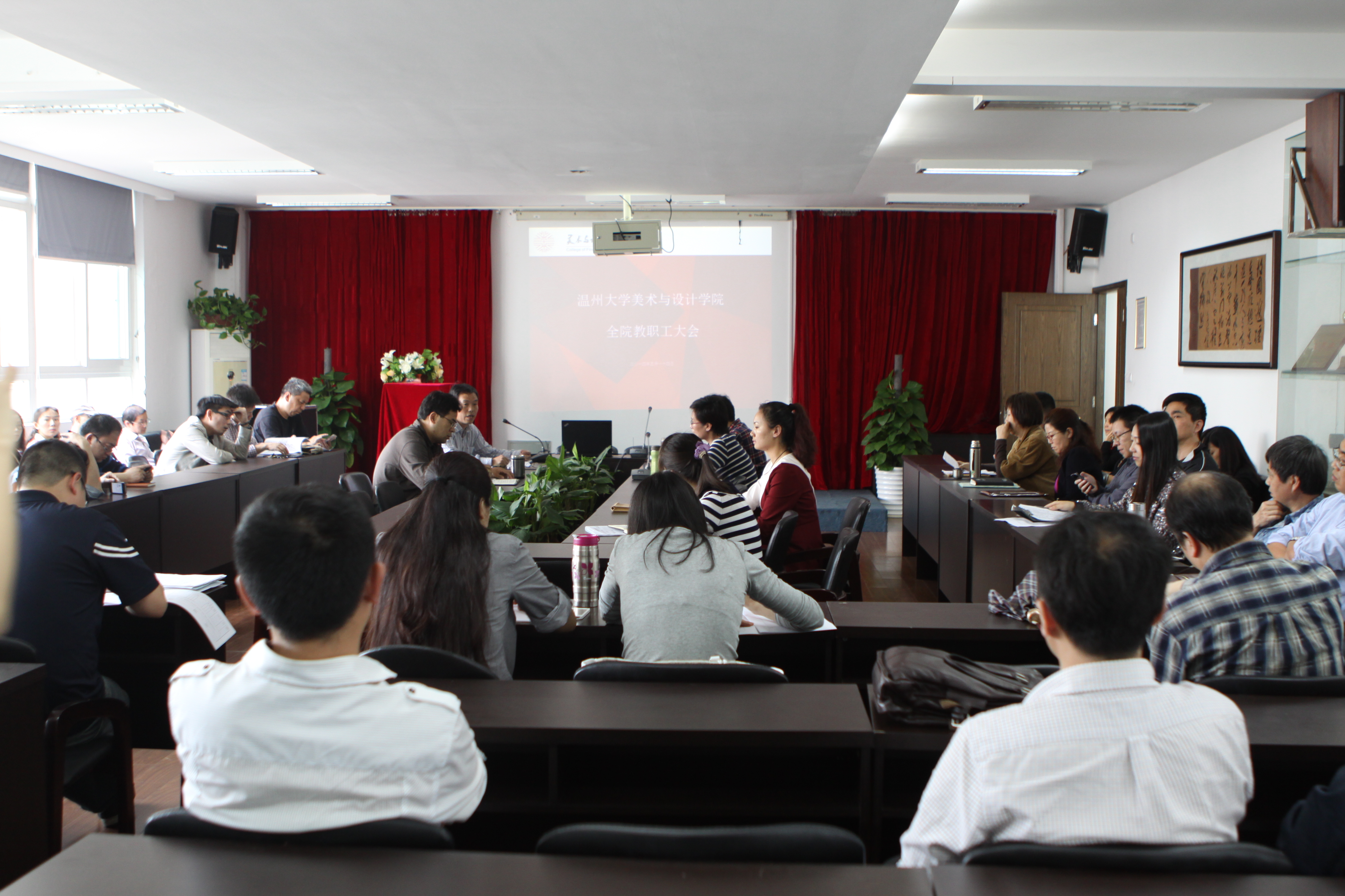 5月14日下午,色色小说 学期中全院教职工大会在2B4001多功能厅举行,院领导李运河、郑彩莲、蔡可群、杨振海及全体教职工出席。院党总支书记郑彩莲主持会议。 会上,蔡可群副院长首先就即将开展的毕业作品展、服装动态秀做了具体工作安排;对各专业人才培养方案修订做了说明,强调要加强对实验室的安全管理工作。杨振海副书记就往届毕业生就业调查、2014届毕业生就业工作及“大艺展”作品收集等工作做了说明与强调。 李运河院长对全院前阶段工作做了总结讲话。李院长首先对学校领导的人事及分工变动做了通报,随后就学院的教学、科研、对外交流等工作做了统一部署。他要求:一要时刻关注学校政策变动,保持敏感度;二要“走出去,引过来”,通过学院交流、教师参展、学院办展等多渠道、多方式加强艺术交流,营造美院艺术氛围;三要将教学、科研有机融合、紧密联系,保持追求艺术理想的同时不断提高服务地方能力;四要专业带头人要在不断凝练专业特色的同时带领团队做出更好成绩。 郑彩莲书记作了总结强调。她指出当前要强调“抓制度”、“强能力”、“促发展”,切实做好学院各项工作。毕业生作品展要提高作品质量;毕业生就业工作要脚踏实地认真做好每一环节,以保证本届毕业生的就业率和下一届的招生工作顺利进行。 会后,学院胡文超、王业宏两位老师就自己在台湾大同大学和美国康奈尔大学的访学经历与在场教师做了精彩分享。校图书馆王希老师也为色色小说 教师做了“提高资源利用、助力教学科研”的讲座。