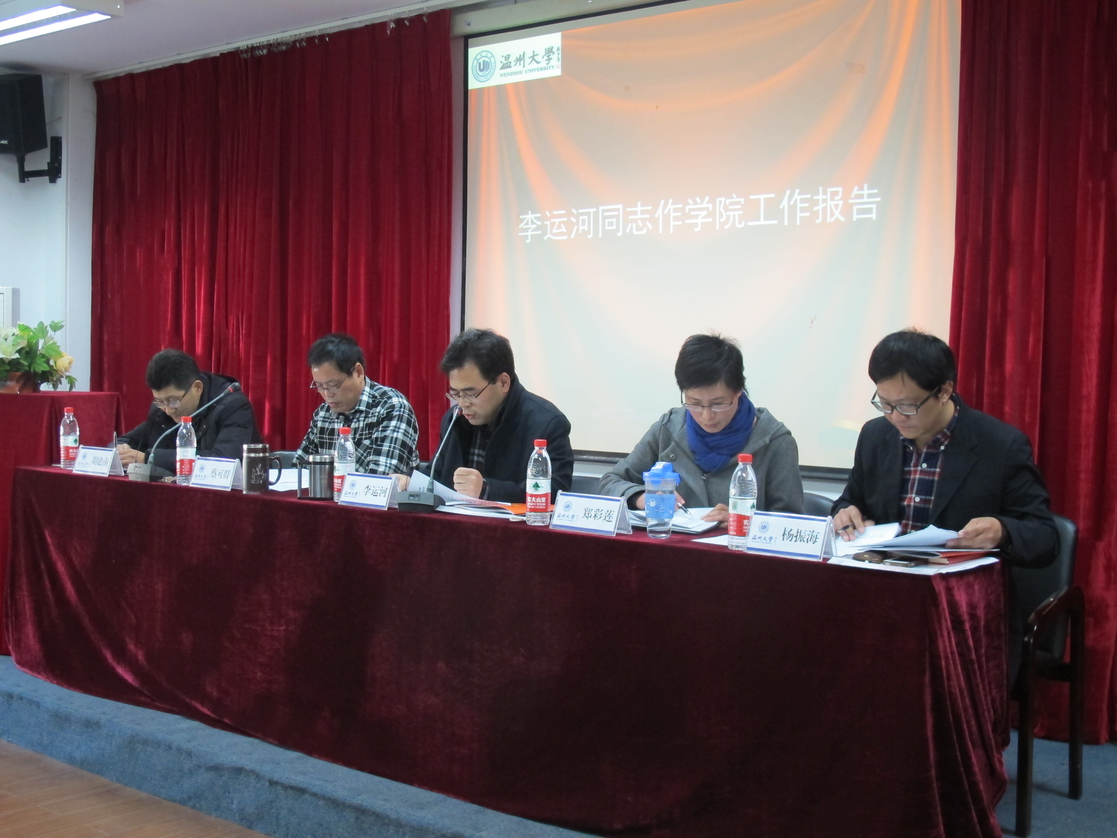 1月3日下午,色色小说 第二届教职工暨工会会员第三次会议在2B4001会议室隆重召开。学院党政领导班子成员、全院教职工60余人出席了本次会议。党总支书记郑彩莲作关于大会筹备工作的情况说明,并宣布大会开幕。开幕式由党总支副书记杨振海主持。 会上,院长李运河作了题为《着眼未来,务实创新,推进学院又好又快发展》的学院年度工作报告。《报告》从五个方面总结回顾了色色小说 2013年完成的主要工作和取得的成绩:一是教学内涵建设和人才培养质量又有新提高;二是学科科研建设又有新跃升;三是师资队伍建设取得新进展;四是党建学生工作取得新成果;五是80周年校庆各项工作稳步开展。《报告》也对学院2014年重点工作思路也做了说明,李院长指出,要认真学习贯彻落实党的十八届三中全会精神,结合学院具体工作实际,着眼未来,务实创新,努力做好各项教学、科研项目培育与申报工作,鼓励教师外出积极交流,全力推进学院各项工作更上新台阶。《报告》最后指出,过去的一年,学院发展事业取得了令人可喜的成绩,这是全院师生同心同德、共同奋斗的结果。新的2014年,学院的发展任务将更加艰巨,他希望全院师生努力发挥主人翁意识,进一步坚定信心,真抓实干,协同创新,为实现学院的内涵式发展做出新的贡献! 随后,工会主席胡建南同志作了学院《工会工作报告》,王薇同志作了学院《财务审计报告》,全体与会成员通过举手表决的方式,一致通过了三个报告。 最后,学院党总支书记郑彩莲致闭幕词,她提到,学院一年来所取得的各项成绩离不开学院全体教职员工的努力支持与积极配合,全院教职员工认真履行会员职责,行使民主权利,积极参与学院建设,实现了推动学院事业发展与实现个人梦想双促进。郑彩莲书记宣布会议胜利闭幕。 本次大会是在学院深入贯彻落实党的十八届三中全会精神,深入推进学院“十二五”发展规划各项任务的关键时期所召开的一次大会。通过本次大会,进一步凝聚了力量,明确了发展思路,为学院的进一步发展奠定了思想基础。 全体起立,奏国歌 蔡可群副院长主持会议 李运河同志作学院工作报告 胡建南同志作学院工会工作报告 王薇同志作学院财务审计报告 郑彩莲同志致闭幕词