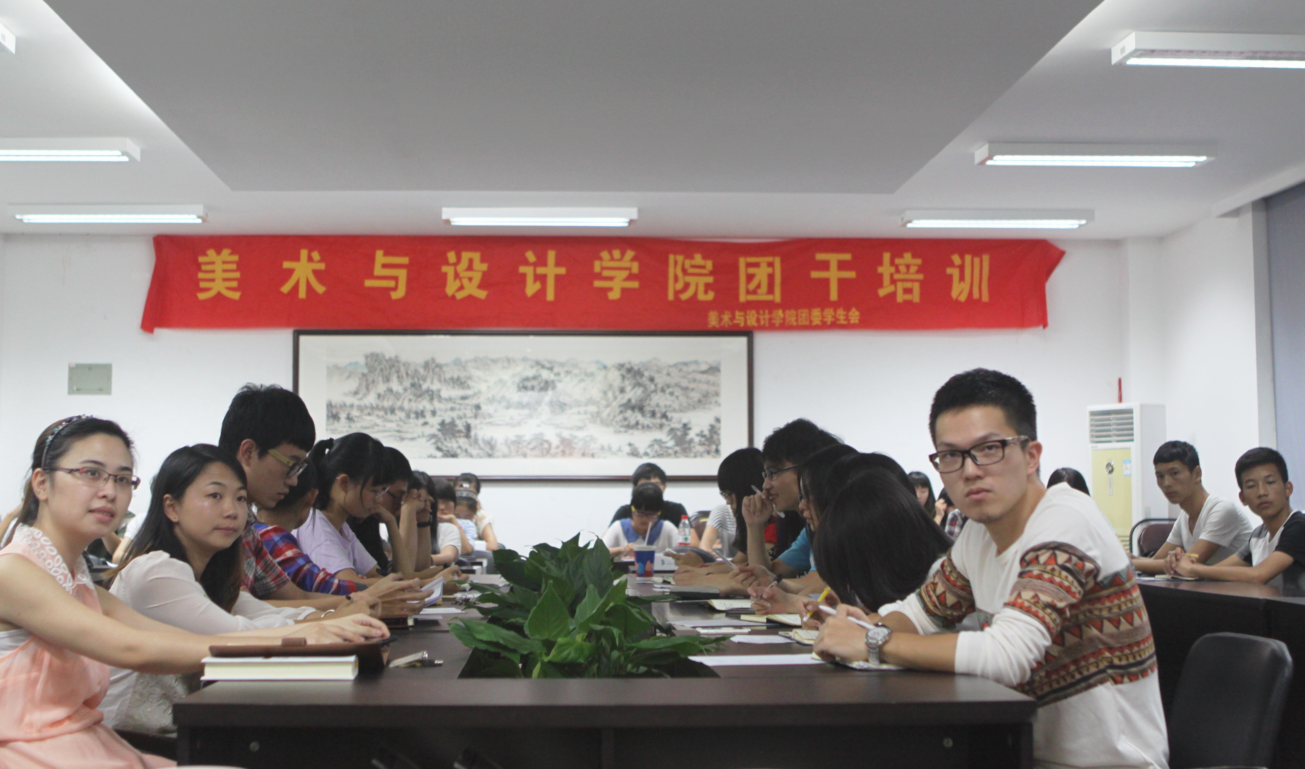 9月29日晚,色色小说 2013-2014学年团学干部培训班在美院2b4001顺利进行开班仪式,并展开了第一讲培训。参加本次培训会的有院党总支副书记杨振海、辅导员叶星及全体团委学生会干部。