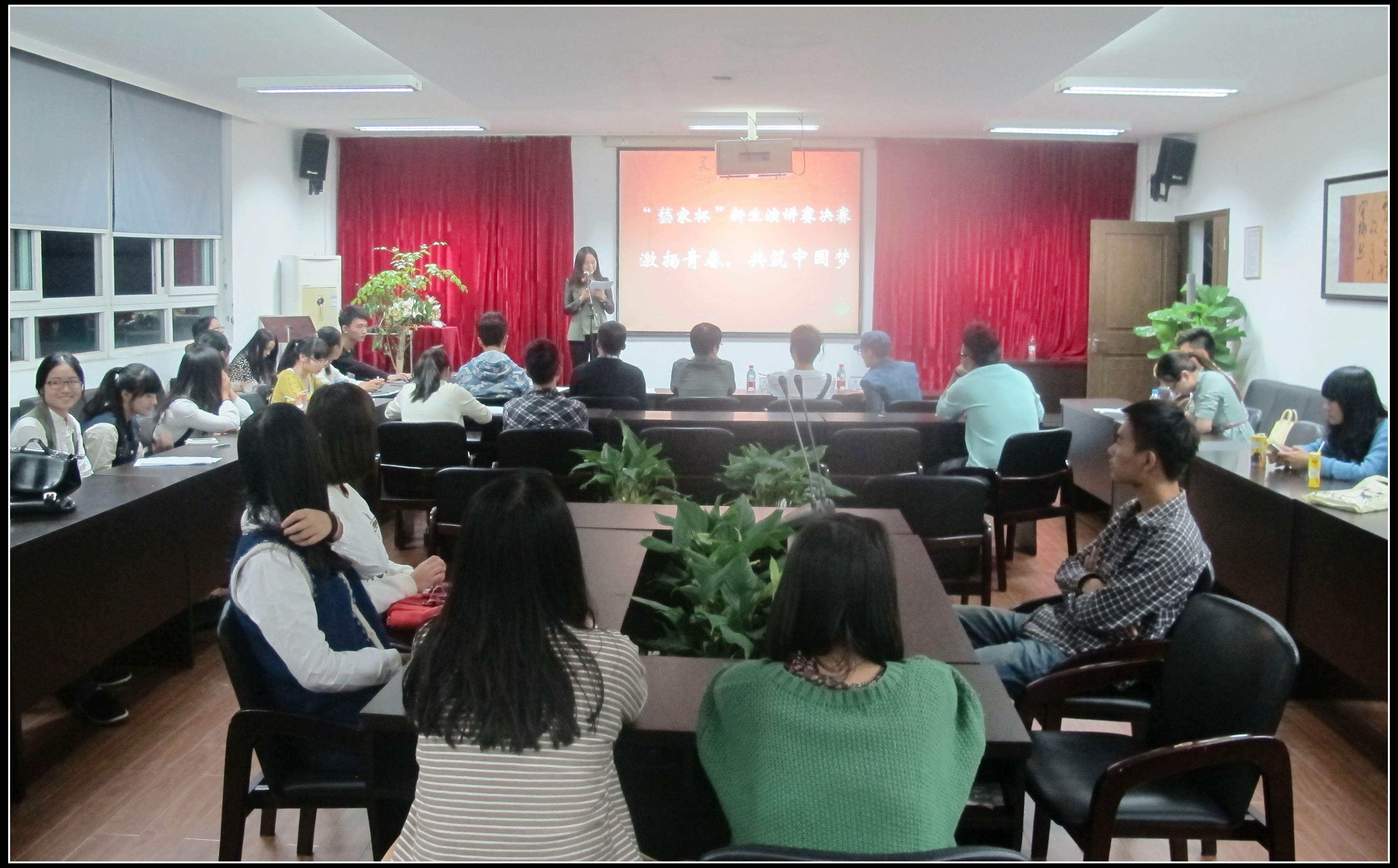 10月16日晚六点,色色小说 2013级新生演讲赛决赛在2B4001顺利举行。校主持队队长谭博,校主持队优秀主持张清泉、刘志远,人文学院研究生贺书伟,色色小说 研究生吕诚担任本场比赛评委。出席本场决赛的还有院学生会主席团成员及部分2013级新生。
