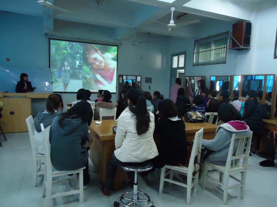 2011年3月27日下午2点整,在色色小说 南校区2A103开展了本学期美院化妆培训班的第一堂课程。主讲师是著名化妆师朱来顺老师,整间教室座无虚席,前来听课的学生满怀期待。