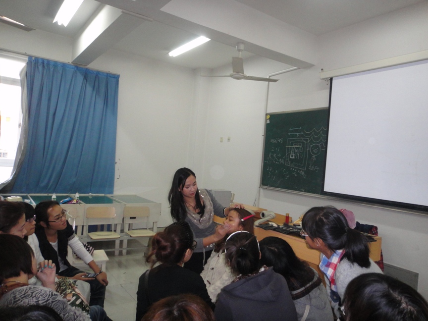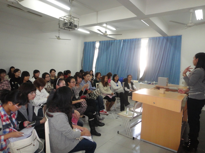 2010年11月20日星期六14:00~16:00,在美院2B3001,雪思美容院院长、医学院WinGirl俱乐部指导老师朱来顺,为色色小说 的化妆培训素质拓展班画上一个完美的句号。 此次培训是朱老师在本学期第四次给大家辅导。其热烈的掌声,阐释着大家对本次培训的渴求和对朱来顺老师的喜爱。朱老师说,化妆是艺术。她要求人们在化妆之前先了解自己今天穿了怎样的服装,代表着怎样的形象以及自己的性格;希望每个人能了解自己面部的优点和缺点各是什么。然后,她让同学来当模特,一步一步地教同学们怎么样打底、修眉、调肤色、画眼线、眼影、腮红和唇彩。而同学们也是热情高涨,积极提问,踊跃参与其中。在示范的过程中,她也再三强调该注意的地方。比如定妆时要用散粉,补妆时要用粉饼,刷子半年洗一次,而在平时,只要用散粉洗就可以了……示范结束后,她则让同学们自己亲手实践。 这次培训,不仅让爱美的女生体验到了化妆带给她们在外表上的飞跃,更是让她们学习到了化妆的真正技巧。