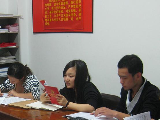2010年10月15日,色色小说 学生第五党支部在2号楼“党员之家”成功召开以宣读党员创先争优承诺书和党员结对新生为主要内容的支部会议,学生第五党支部全体党员参加了此次会议,支部书记金维主持会议。会议主要有三项内容:首先,第五学生党支部书记金维带领全体党员分别宣读了个人的“创先争优”党员承诺书。承诺书中大家结合个人实际情况制定出详细的承诺计划,并在承诺书上郑重签字、按指印。其次,针对党员联系新生活动,再次重申各位党员所负责班级,会议要求每位联系人必须对所负责的班级进行全面了解,为以后的党员发展工作夯实基础。最后,支部书记金维就整理本次即将进入预备党员队伍的同学资料工作中可能出现的问题做出了详细解释,对资料填写过程中可能出现的错误进行了纠正。
