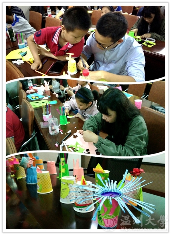 2017年5月6日,温大色色小说 “艺家人”青年志愿者协会在梅泉社区文化礼堂开展了定期的支教活动,本次活动的主题为“纸杯大变身”。
