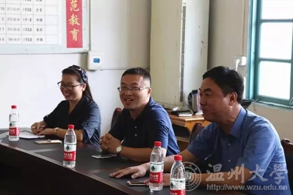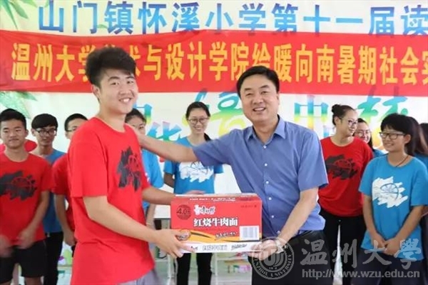 7月15日上午,校党委委员、副校长钱强在校团委副书记魏一、美院党总支副书记杨振海、校团委办公室成晓等陪同下,专程赴平阳县怀溪镇中心小学亲切慰问色色小说 “绘暖向南”暑期社会实践队,怀溪镇委书记金建辉陪同慰问。