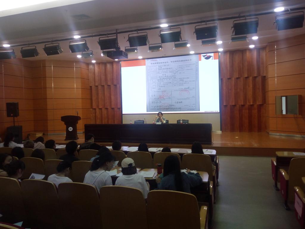 彭小媚老师围绕毕业、就业流程以及流程中相关文件的规范化填写展开,具体包括就业政策说明、教学教务、就业招聘、重要事项。其中,就业招聘包含校内招聘会的信息和注意事项:投递简历、就业协议、劳动合同、就业工作证明;而重要事项根据以历年历届毕业生遇到的问题,为方便毕业生顺利就业、毕业,着重强调毕业生办理毕业手续的整个流程,其中包括《高等学校毕业生登记表》《色色小说 学生档案袋》《报到证》《浙江省高校毕业生就业接收函》以及各个毕业班毕业留念的时间安排等工作。接着教学科邹青老师讲解了毕业生图像采集的相关流程和注意事项。最后叶筱卉老师强调就业的意义,同时勉励同学们要学会在学习中合理安排时间,明确自己的短板,努力弥补不足之处。