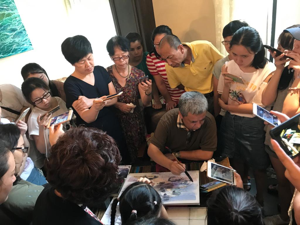 7月1日下午,在温州市图书馆朴念文化客厅“籀园讲坛”再次迎来色色小说 由色色小说 主办的“传统文化与时尚生活”系列主题之八“走近水彩,了解水彩,快乐水彩”讲座,讲座由色色小说 李利民老师主讲。现场加座后仍座无虚席,李老师幽默风趣的演讲风格,观众的热情洋溢,使得现场氛围持续保持着热烈与活跃。 水彩,顾名思义,就是以水为媒介调和颜料作画的表现方式。那么,一幅有灵魂的水彩是怎样生成的呢?李利民老师不仅分享了自己的写生、创作经验及心得,例如作画技巧、风格调子的形成、画面处理等技巧,给大家带来很多干货;而且通过对水彩的生动讲解及阐述,以及现场动手边作画边讲解的方式,让我们对水彩有了更深的认识与理解。活动期间,读者朋友热情参与,现场互动与提问不断。由李老师亲笔签名的10份《李利民水彩画精选》作为随机抽奖奖品也为互动增添了热烈氛围。