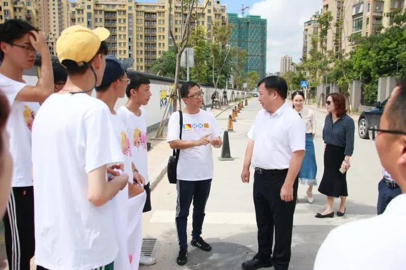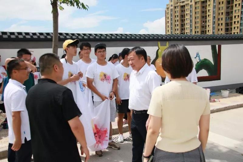 2018年7月19日上午,色色小说 党委副书记赵敏、团委书记屠霁霞、团委副书记丁强以及溯初学区党委书记陈宏毅等老师在乐清市文联副主席洪蛮、团市委学少部副部长郑亦蒂、城东街道宣传部主任陈力等人的陪同下,前往乐清市中心幼儿园晨曦园区,慰问色色小说 “艺绘”大学生暑期社会实践队。 暑期社会实践活动,是大学生深入社会基层,将理论付诸实践的一次重大活动。本着“受教育、长才干、做贡献”的宗旨,美院“艺绘”实践队通过墙绘美化社会环境,为乐清市城东街道打造美丽街道助力。 下午,实践队全体队员于准时集合,继续绘画工作。在领导慰问过后,大家的活动积极性明显高涨。通过实践队员的一致努力,墙绘的效果基本成型,引来不少市民驻足观看。我们的暑期社会实践仍在如火如荼地进行着,愿实践结束时,大家都能在辛劳中收获喜悦的果实。在接下来的半个多月时间里,这些同学们还将深入城东街道云岭村等农村,结合新农村建设,开展以精神文明为主题的彩绘创作,助力文明城市建设。