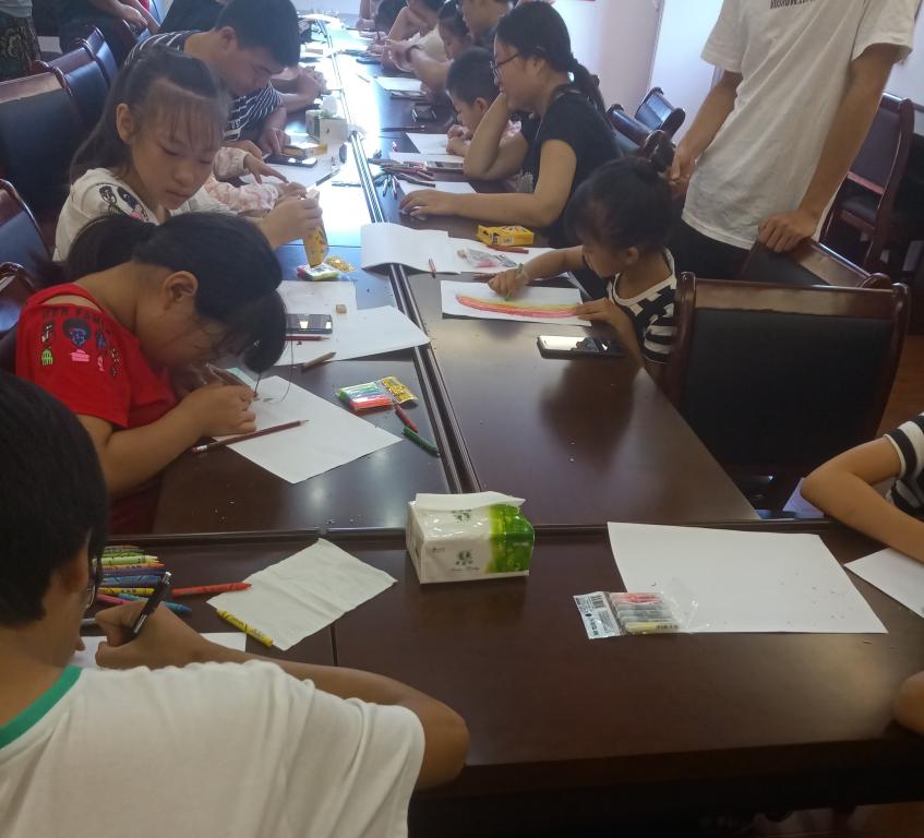 2018年7月21日,大手牵小手暑期社会实践对来到了茶山镇舜岙村文化礼堂,与孩子们一起进行了创意绘画的活动。