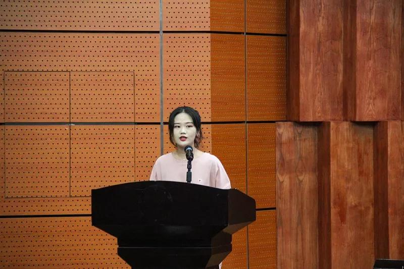 新生代表岳维佳同学回忆过去,展望未来,她表示全体新生将尽快调整状态,融入大学生活,带着无限求知的赤诚之心去开拓进取,去描绘无悔的青春,去书写新的辉煌。