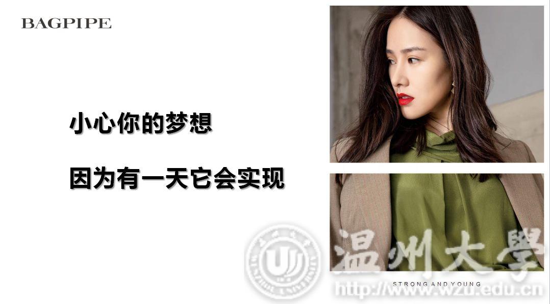 “不忘初心,使命必达。”风笛宣讲人缪老师在分享风笛创始人创业史、发展史,讲述风笛的过去、现在与未来,同学们都听的津津有味。宣讲会在主持人和同学们的互动中开始后,主持人分别从公司品牌设计风格,员工的衣食住行娱,薪资问题和管培生培养计划等几个同学们关心的方面来介绍风笛服饰有限公司的细节。BAGPIPE风笛成立于1999年,是一家自主开发、生产、销售时尚女装和童装的品牌经营企业。风笛公司的女装品牌分为周末时尚,摩登帅气,精致优雅三个风格,而风笛公司的童装品牌的定位则是针对2-8周岁的儿童设计的,风格多样是风笛公司的优势所在。衣食住行方面,风笛公司也非常重视员工的感受,为他们提供了舒适的环境以便于员工们更好的工作和生活。同时,风笛公司也十分重视对人才的培养,也有一套完整的体系进行人才的引入。这便是风笛管培生培养计划的由来。对于进入风笛上班的应届生,风笛建立了完善的“管培生培养计划”,全面打造“一专多能”的复合型人才,让每个进入风笛的应届生迅速成长,成为独当一面的技术或管理人才。在经过由系统培训、店铺见习、核心轮岗和专岗实践四个环节的管培生培养计划之后,实习生便能更好地融入公司这个大集体。说到薪资方面的话题,风笛公司的PPT上有着这样一段话:“一个人,只有自己成长了,事业才会跟着成长。一个人,只有自身价值提升了,薪资岗位才能跟着提升。”从这段话中我们也可以清晰地看到风笛公司对人才和员工能力的重视。对于服装设计、服装展示、广告设计、面料纺织类的专业,风笛公司也提供了如设计助理、陈列师助理、平面设计助理、面料跟单、理化检测的专业让同学们选择,以便给予同学们更大的就业空间。
