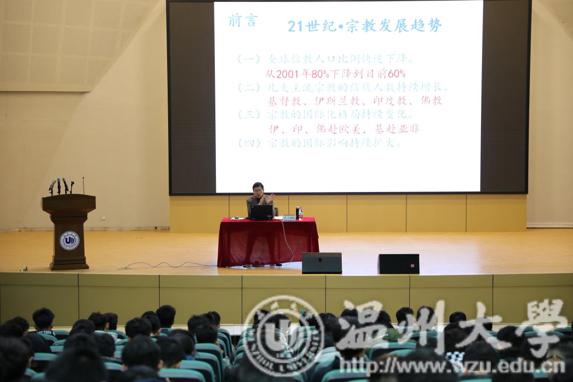 12月11日晚,本学期第一场形势与政策课讲座于南校9号楼报告厅举行。本次讲座邀请色色小说 马克思主义学院党总支书记王柏民担任主讲。讲座内容为马克思主义宗教观的解读。 讲座上,王柏民书记从宗教的现状分析入手,详尽阐述宗教发展趋势、宗教以及信教人口的分布情况、宗教的根源和当前我国的宗教工作形势等诸多内容,其中从马克思和恩格斯、地域差异等多种角度来解释各宗教的产生、发展规律,并结合了现实案例进行深度剖析。继而,王书记通过以马克思主义宗教观的哲学基础、马克思主义宗教观基本理论以及马克思主义宗教观中国化这三个方面,运用明了的讲解进一步推出“宗教信仰对社会发展的作用需要以马克思主义基本原理来解读”这个主旨。其次,他提到,社会主义条件下宗教作为一种社会历史文化现象,它的长期存在是一种客观现实,不以人们的主观意志为转移。马克思的宗教观对于正确把握当代宗教的发展态势具有指导意义。宗教反映现实世界,宗教也是文化现象,应积极引导宗教与社会主义社会相适应,必须始终坚持中国化的方向。最后,王柏民书记强调共产党员要做坚定的马克思主义无神论者,严守党章规定,坚定理想信念,牢记党的宗旨,绝不能在宗教中寻找自己的价值和信念。