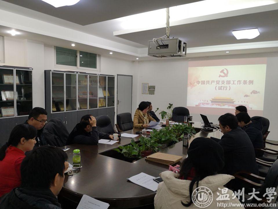 12月13日上午,色色小说 在2B216召开党总支中心组理论学习(扩大)会,专题学习中共中央印发的《中国共产党支部工作条例(试行)》。学院党政班子成员、总支委员、各支部书记参加学习。会议由学院党总支书记张丽萍主持。 张丽萍书记组织大家学习了《条例(试行)》内容,她交流阐述了《条例(试行)》颁布的重大意义,全面讲解了贯穿《条例(试行)》的基本精神。从《条例(试行)》的总则、组织设置、基本任务、工作机制、组织生活、党支部委员会建设、领导和保障等方面梳理了《条例(试行)》的重点内容。 《中国共产党支部工作条例(试行)》以习近平新时代中国特色社会主义思想为指导,既发扬我们党长期积累的党支部建设宝贵传统,又体现党的十八大以来基层创造的好做法好经验,规定明确、符合实际。制定和实施《条例(试行)》,是推动全面从严治党向基层延伸的重要举措,为新时代党支部建设提供了基本遵循,对加强党的组织体系建设,全面提升党支部组织力、强化党支部政治功能,巩固党长期执政的组织基础,意义十分重要。 张丽萍书记强调,学习贯彻《条例(试行)》一要提高政治站位,认清大抓党支部建设的重要性;二要把握要求,围绕提升党支部组织力、战斗力,强化政治功能,加强支部建设;三要建立标准体系,提升党支部的标准化、规范化建设。 根据总支工作安排,下一步各党支部要进一步开展学习《条例(试行)》活动,持续学习贯彻《条例(试行)》精神。
