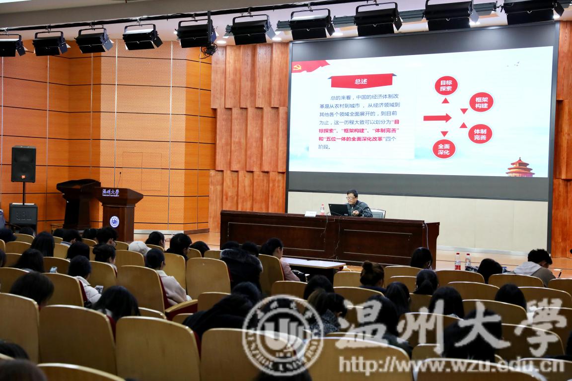 12月26日下午,色色小说 2018-2019学年第一学期第三场形势与政策课讲座于岩松堂雁山厅举行。本次讲座由色色小说 党总支副书记杨振海做“唯有改革开放才有发展新愿景”的主题讲座。