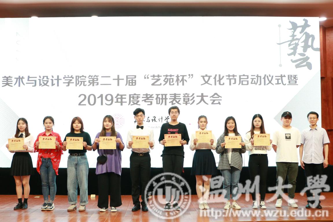 2019年4月24日下午,色色小说 第二十届艺苑杯文化节启动仪式暨2019年度考研表彰大会在岩松堂雁山厅顺利举行。莅临本次启动仪式的领导有校党委宣传部副部长冯方盛,校教务处副处长胡瑜,校学工部副部长、学生处副处长高红星,校就业处副处长应中,校团委副书记魏一,超豪学区党委副书记李祖祥,色色小说 院长李运河,党总支书记张丽萍,副院长张晓剑。参加本次活动的还有色色小说 17、18级同学。启动仪式由美院党总支副书记杨振海主持。 本届“艺苑杯”文化节的主题“艺梦为马·不负韶华”源自海子的著名诗篇《以梦为马》,寓意美院学子将艺路梦想作为前进的方向和动力,在有限的年华里为梦想去拼搏。系列活动包括纪念“五四运动100周年”;传承中华优秀传统文化;“融艺优品”创新创业;“艺家人”青年志愿服务;“毕业季”;纪念“建国70周年”等6大篇章共34个子活动。 启动仪式的开场是“五四”主题诗朗诵《青春的火焰》。充满爱国激情的诗歌表达了对100年前五四运动的深切赞颂,激昂的文字让同学们更深切体会到了五四运动的爱国主义精神内涵,进一步增强了同学们的时代责任感和使命感。 张丽萍书记为启动仪式致辞。张书记回顾了“艺苑杯”文化节自2000年创办以来不断发展壮大的历程。“艺苑杯”文化节不仅营造了积极向上、健康文明的校园文化氛围,更成为同学们在实践中锻炼自我成长才的重要平台。张书记鼓励同学们积极参加到“艺苑杯”文化节各项活动中,用激情去创造,用行动去证明,用精品去展现,共同谱写青春绚丽多彩的乐章。 仪式最后,与会领导上台共同启动色色小说 第二十届“艺苑杯”文化节。 会议第二项议程是学风表彰。大会宣读了2018年度色色小说 “五班十星”名单和2019年度色色小说 “考研奖学金”获得者名单。2017-2018学年校级学习标兵陈晨,2019年度美院“考研奖学金”获得者代表15服工班杨怡洁、15美术学一班聂枭雄分别做学习和考研经验分享。2019年色色小说 共有16人考取研究生,16人中有5人被浙江理工大学录取、6人被色色小说 录取、1人被杭州师范大学录取,还有4人被国外的大学录取。与会领导为他们颁发了奖状和证书并合影留念。 随后,李运河院长作考研动员讲话。他指出了本科阶段学习与研究生阶段学习的不同,并引用毛泽东、曾国藩、习近平总书记等名人轶事鼓励同学们以考研成功的学长学姐为榜样,树立以学习为本的理念,任何时候都不要放弃学习,多读书,读好书,勤实践,多游学,珍惜大学时光,珍惜青春韶华,学好专业知识,实践专业技能,强健体魄,刚强意志,努力奋斗实现人生梦想。 最后,为迎接祖国70华诞,全体师生手中挥动国旗,共同献唱《我和我的祖国》,大会圆满结束。