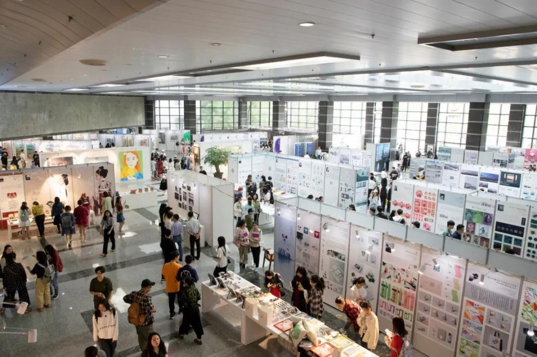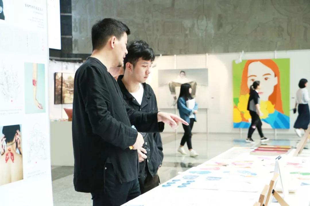 广大学子认真观摩毕业生作品