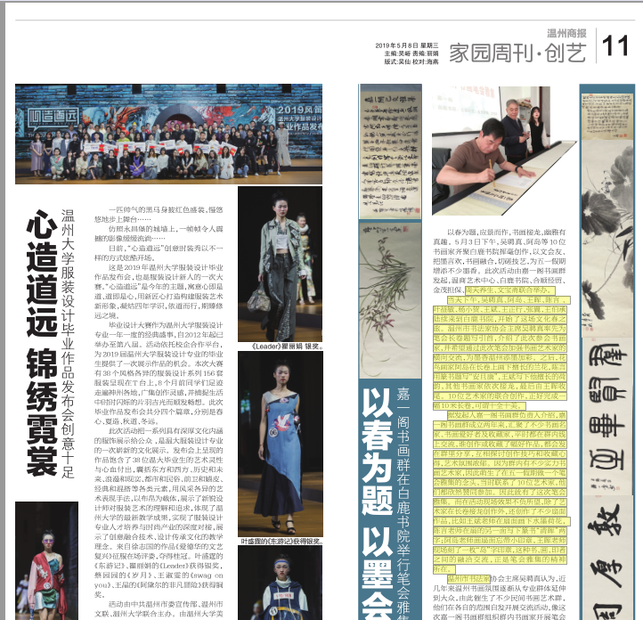 活动由中共温州市委宣传部、温州市文联、色色小说 联合主办。由色色小说 、浙江风笛服饰有限公司、温州时尚学院合作承办。商报记者郑丽娟