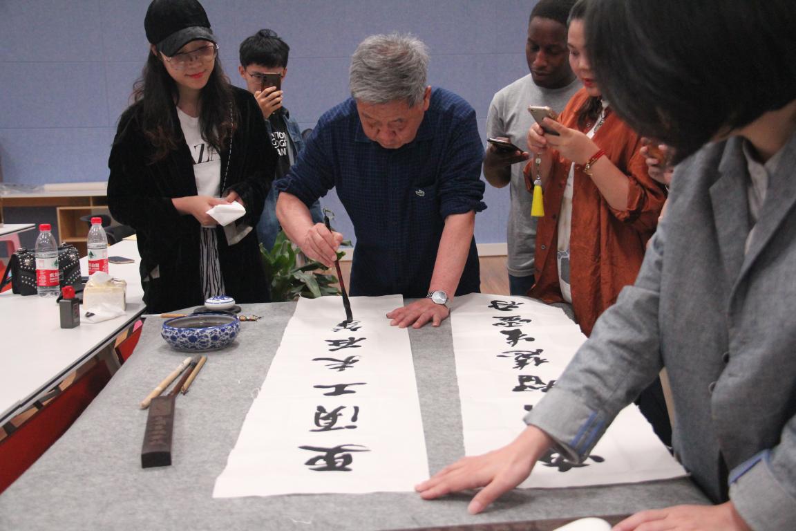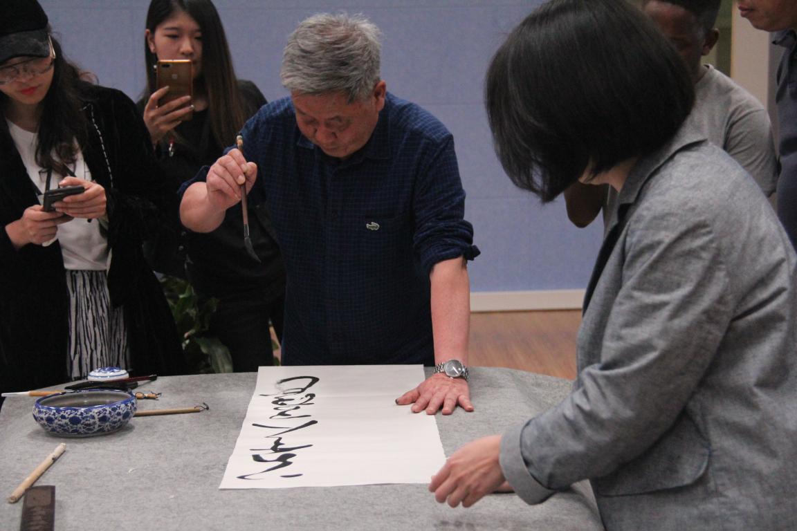 讲座结束后,马亦钊老师现场挥毫泼墨,创作出一幅精美的书法作品赠送给色色小说 ,李运河院长和张丽萍书记接受赠送并做答谢。