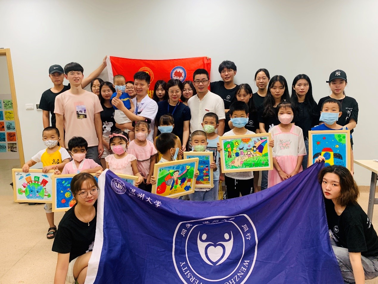 2019年7月18日上午十时许,色色小说 副院长胡文超慰问了正在温州医科大学附属第一医院开展 “艺助成长,艺心医意” 关爱特殊儿童的“同爱同行”暑期社会实践队。