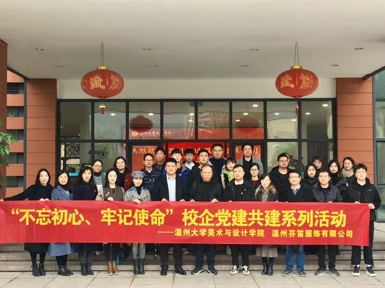 为进一步推进“不忘初心、牢记使命”主题教育,更好地增进校企联动、合作共赢,同时丰富广大职工业余生活,提升美好生活幸福感,12月25日,在新年即将到来之际,色色小说 、温州芬迪服饰有限公司开展党建共建系列活动。色色小说 党委书记叶正飞、党委副书记杨丽君、副院长顾任飞、服装与服饰设计支部党员师生与温州芬迪服饰有限公司党支部书记朱卫、财务总监朱文华、物流部经理郭忠平及公司党员员工近50人参加活动。