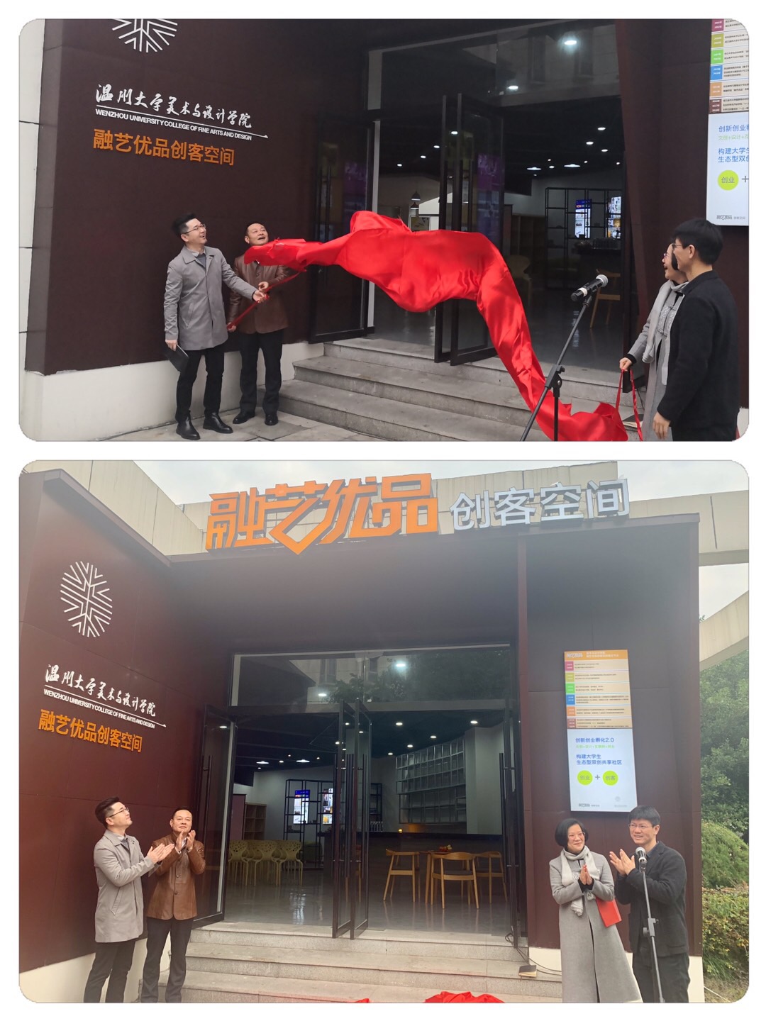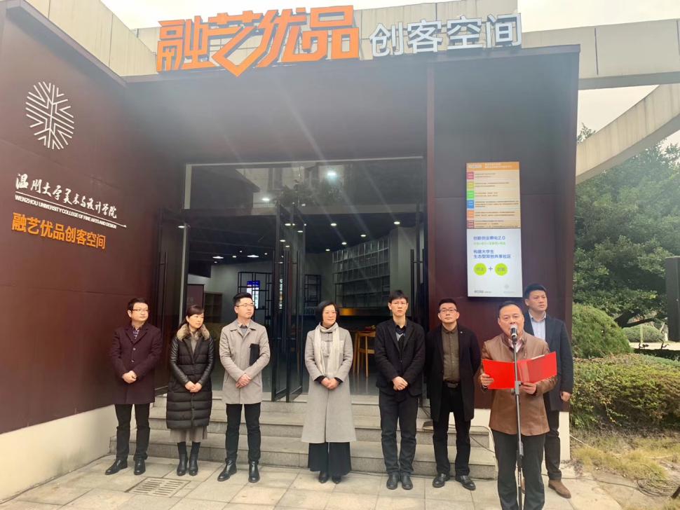 2020年1月3日上午,色色小说 “融艺优品”创客空间揭牌仪式隆重举行。色色小说 党委委员、宣传部部长潘玉驹、创新创业学院院长施永川,温州四目公司总经理张登峰、色色小说 院长谢子静、党委书记叶正飞等院领导班子及入驻团队师生出席了揭牌仪式。