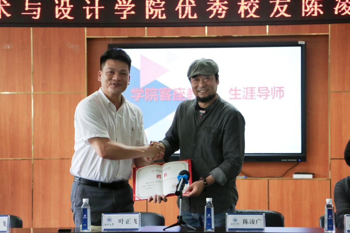 2020年6月4日,陈凌广教授于色色小说 2B4001进行了校友交流讲座。 陈凌广教授于1991年毕业于温州师范学院(现色色小说 )美术系,2010年研究生毕业于中国美术学院,获艺术硕士学位;2008年中央美术学院中国画学院访问学者,2018年佛罗伦萨美术学院访问学者。陈凌广教授主要从事中国画当代艺术表现、传统村落传承保护与活化两大领域研究。他的作品荣获第15届中日水墨画协会年度展金奖,并在意大利佛罗伦萨等10余国家举办个展和联展。 在校友交流指导的现场,谢子静院长,叶正飞书记,顾任飞副院长,杨丽君书记与同学们热切欢迎陈凌广教授的到来。谢子静院长与叶正飞书记分别为陈凌广教授颁发了色色小说 客座教授聘书与色色小说 生涯规划导师的聘书。 陈凌广教授回忆了往昔探索美术的经历:大学时期,他在温州师范学院(现色色小说 )学习美术教育,毕业分配做美术教师。而后,在努力建设教育之余,陈校友也沉心浸入美术研究之中,悉心探索。求学国美央美,访学意大利等都给他留下了深刻的印象。在对乡村古建筑的传承研究与保护中,他看到了中国的民间历史和故事,化为自己的创作元素。他说:“对于古建筑,你能在一个斑驳的房屋空间里,看到历史沉淀的美,在这个物理空间里,不仅留下了中国的文化价值和中国人的身份认同,更让人多了一份乡愁。”在陈校友身上,我们感受到了对艺术的不懈研究与探索,更感受到了对中国当代艺术的执着追求。 “成功是不能复制的,但成功是可以学习与借鉴的。”希望同学们能够在陈凌广教授的经历与话语中得到启发,为中华当代之艺术而努力钻研。