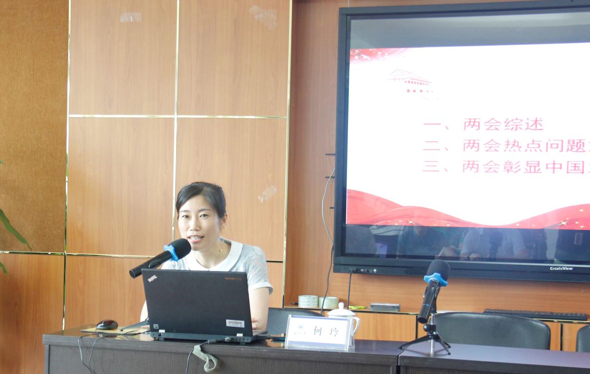 何玲博士作题为《危中寻机,稳中求进--全国两会热点解读》的专题报告